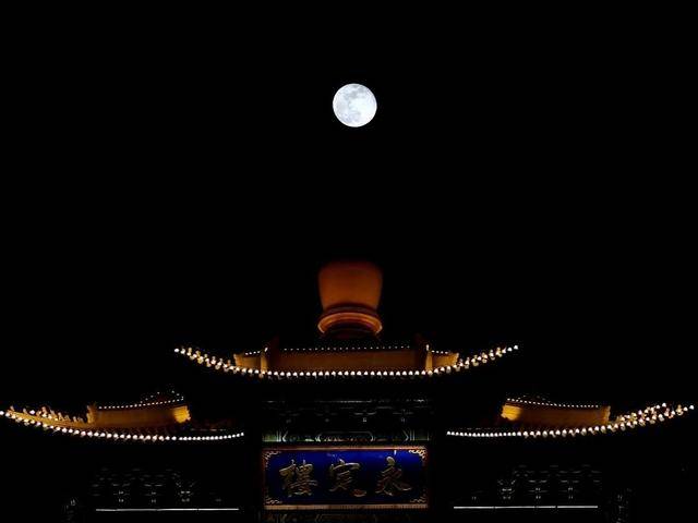 1月4日,适逢冬月十六,一轮圆月静静悬于永定楼上,清辉洒落,夜色如水,意境深远。