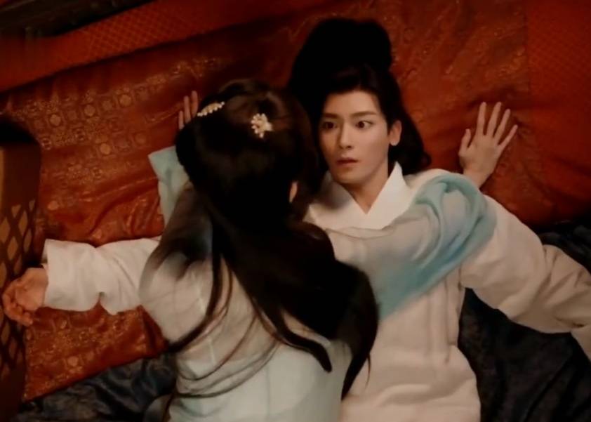 1、荣善宝将陆江来推倒在床上,两人四目相对,脉脉含情。