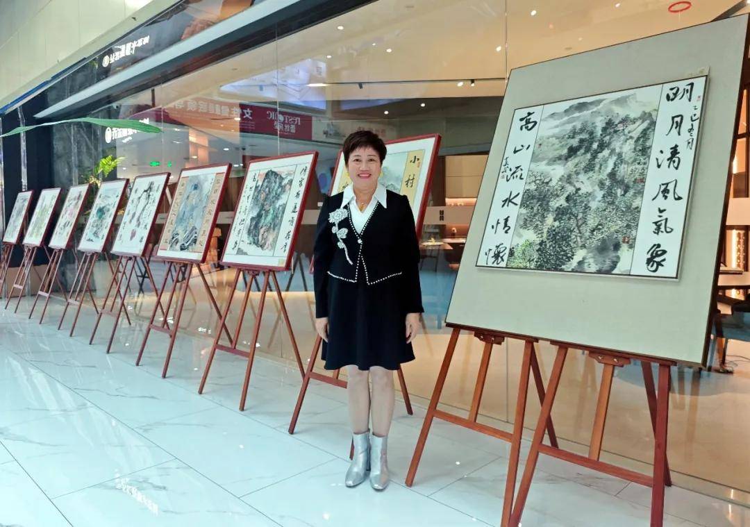 林明俊表示,符诗碧根据国画配写的楹联书法作品,所撰楹联绝非简单的画面描述,而是深谙中国画学精髓的“点睛之笔”,展现出较好的文学修养。符诗碧行书的节奏韵律与自己创作的大写意泼墨山水同频共振。行书笔法的流动与变幻,完美呼应了山水画中云烟的氤氲和山势的起伏。