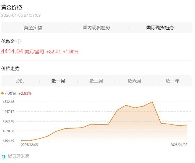 2026年1月5日,受突发地缘政治事件催化,现货黄金价格开盘急速上涨。