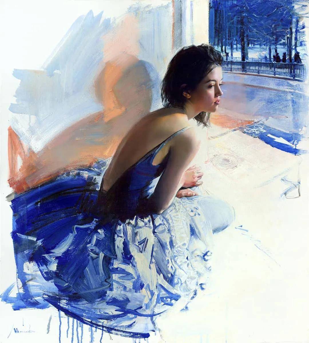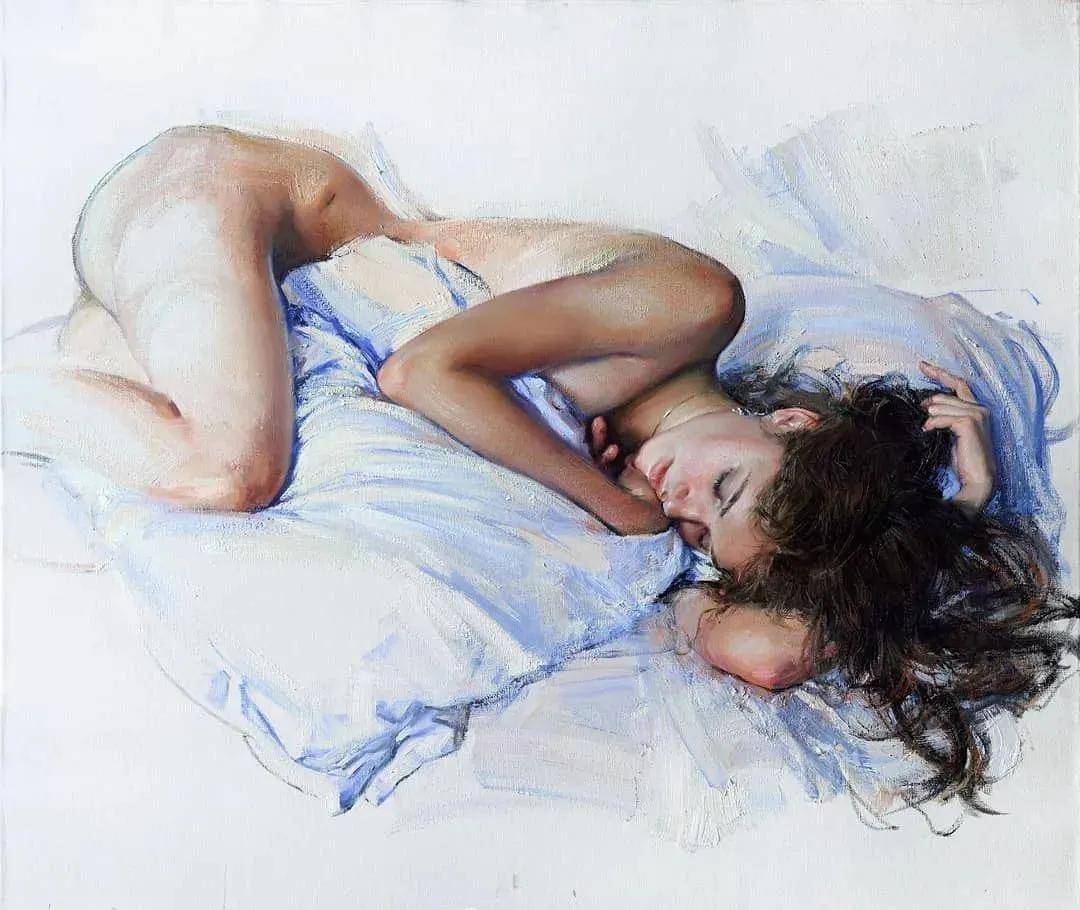 他的油画,既有潇洒带劲的笔触,又有性感细腻温和的柔美