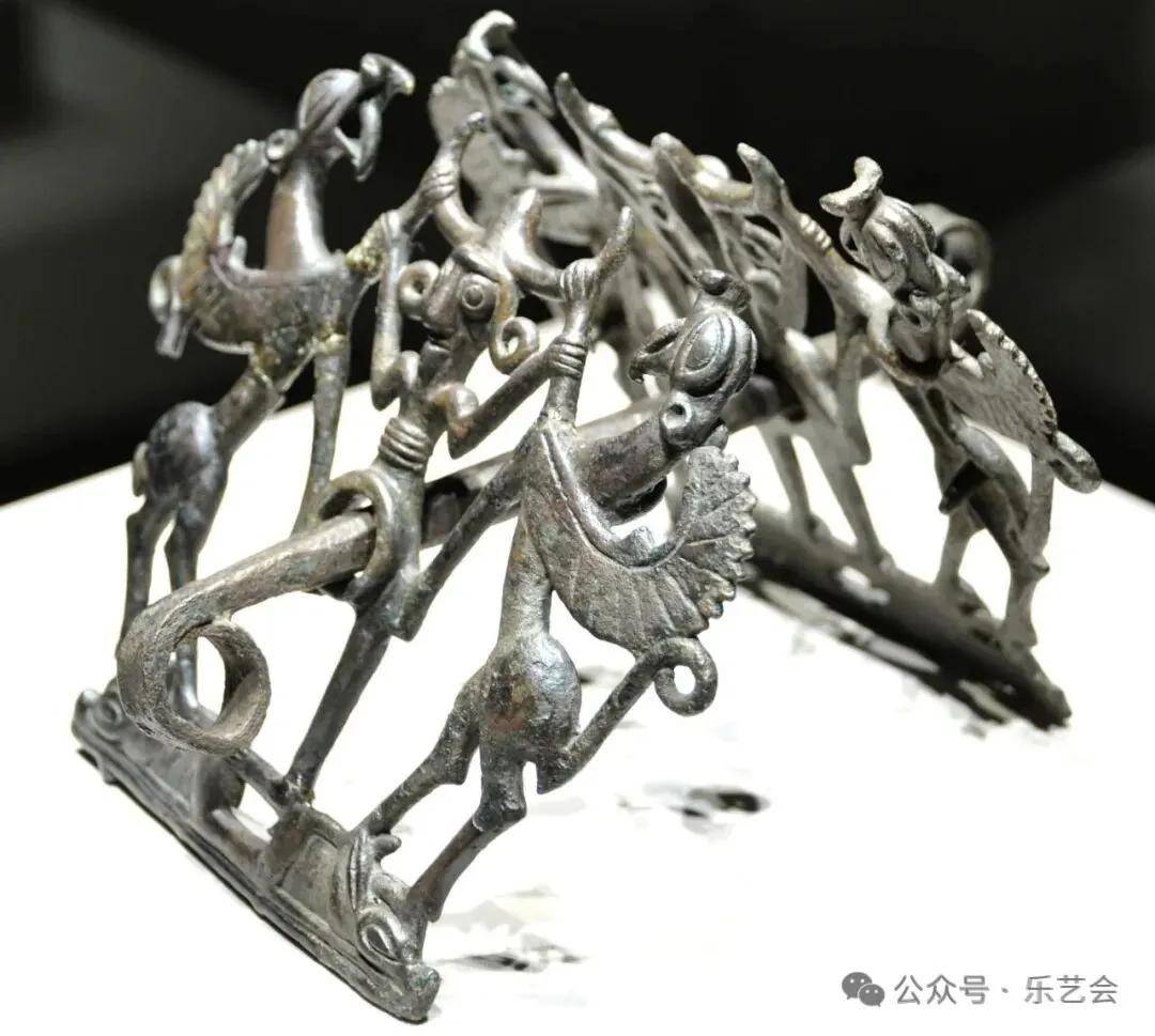 (二)卷曲动物纹的东向回流与风格重构在西东向传播的同时,中国北方的动物纹造型也通过反向传播影响欧亚草原,其中卷曲动物纹的回流最具代表性。林沄在《欧亚草原的卷曲动物纹》中指出,公元前6 世纪至前 5 世纪,中国北方地区出现 “躯体高度卷曲的动物纹”,其 “首尾相接的闭环造型、线条的流畅性” 与欧亚草原的 “开放式动物纹” 差异显著,这种造型可能源自中原地区的 “云纹” 艺术,经北方族群改造后向西传播(林沄,2008)。 考古证据显示,这种卷曲动物纹在蒙古高原西部的鹿石文化中出现变体,“卷曲角度增大,融入当地的鸟纹元素”(邵会秋,2016)。林沄将其称为 “造型艺术的文化反哺”—— 中国北方族群在吸收草原动物纹的基础上,以本土审美重构造型语言,再通过贸易与族群互动反馈至欧亚草原(林沄,2003)。