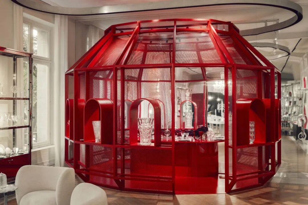 也呼应店铺中“巴卡拉红”这一独特色调。