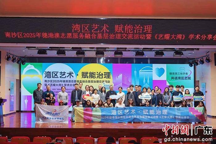 近日,“湾区艺术·赋能治理”南沙区2025年穗港澳志愿服务融合基层治理交流活动暨《艺耀大湾》学术分享会在南沙图书馆报告厅举行。粤港澳三地的学术界、艺术界嘉宾,120余名高校师生及社区居民、青年志愿者、市民读者齐聚一堂,共同探讨艺术如何赋能社区治理、激活湾区记忆。