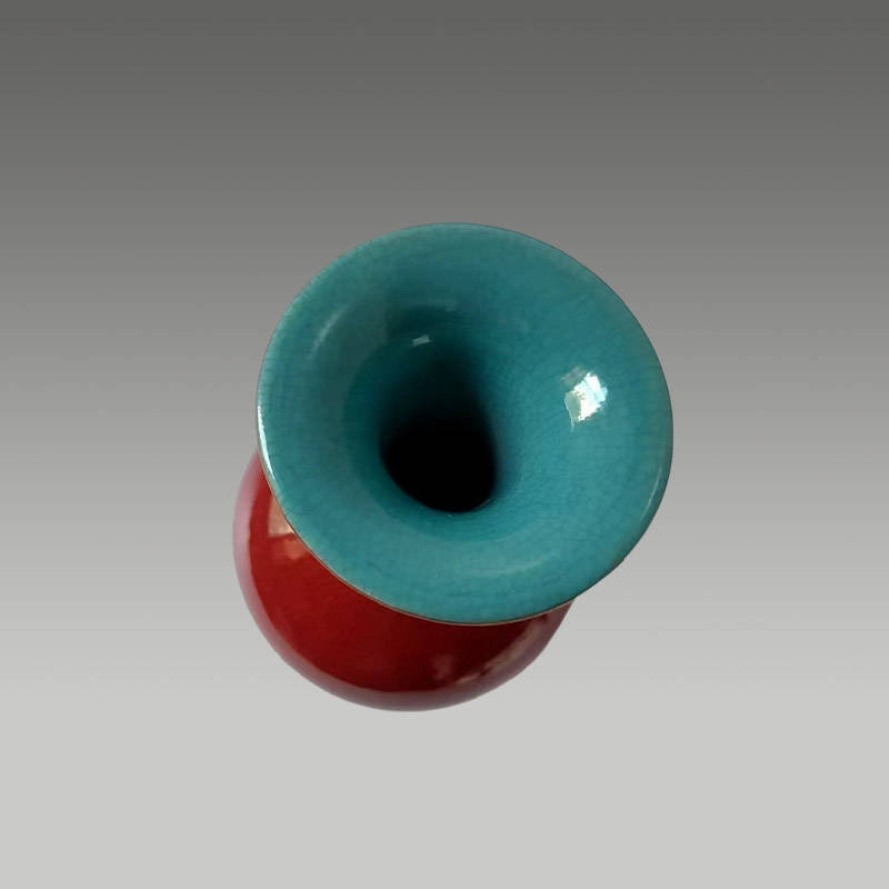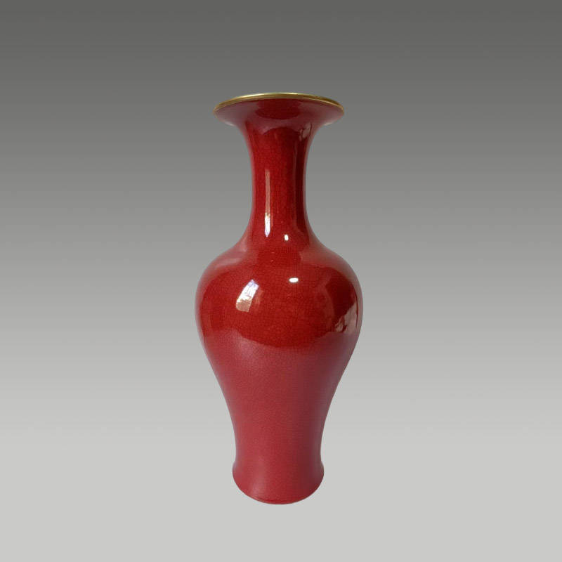 霁红釉赏瓶,开片肌理灵动,釉色浓妍莹润,金口雅致,尽显典藏气韵