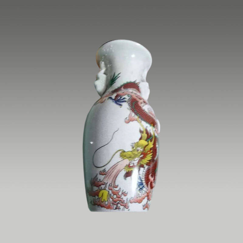 这对龙纹瓷瓶纹饰鲜活灵动,红蓝祥龙矫健威猛,釉色温润细腻,尽显匠心与祥瑞气韵,堪称精美之作。