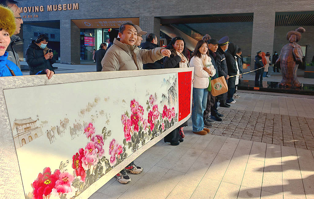 洛阳画家王锦成绘长卷迎接天山来客,弘扬丝路精神 。 2026年1月7日,隋唐洛阳城定鼎门遗址前旌旗飘扬,千年城门缓缓开启,迎接一支跨越山海的特殊队伍——从新疆哈密东天山出发的丝路骆驼队。33峰骆驼36位队员踏着古韵款款而来,驼铃叮当穿越时空,与遗址中留存的唐代驼蹄印遥相呼应,为这场历时140天、绵延3000余公里的丝路征程画上圆满句点。