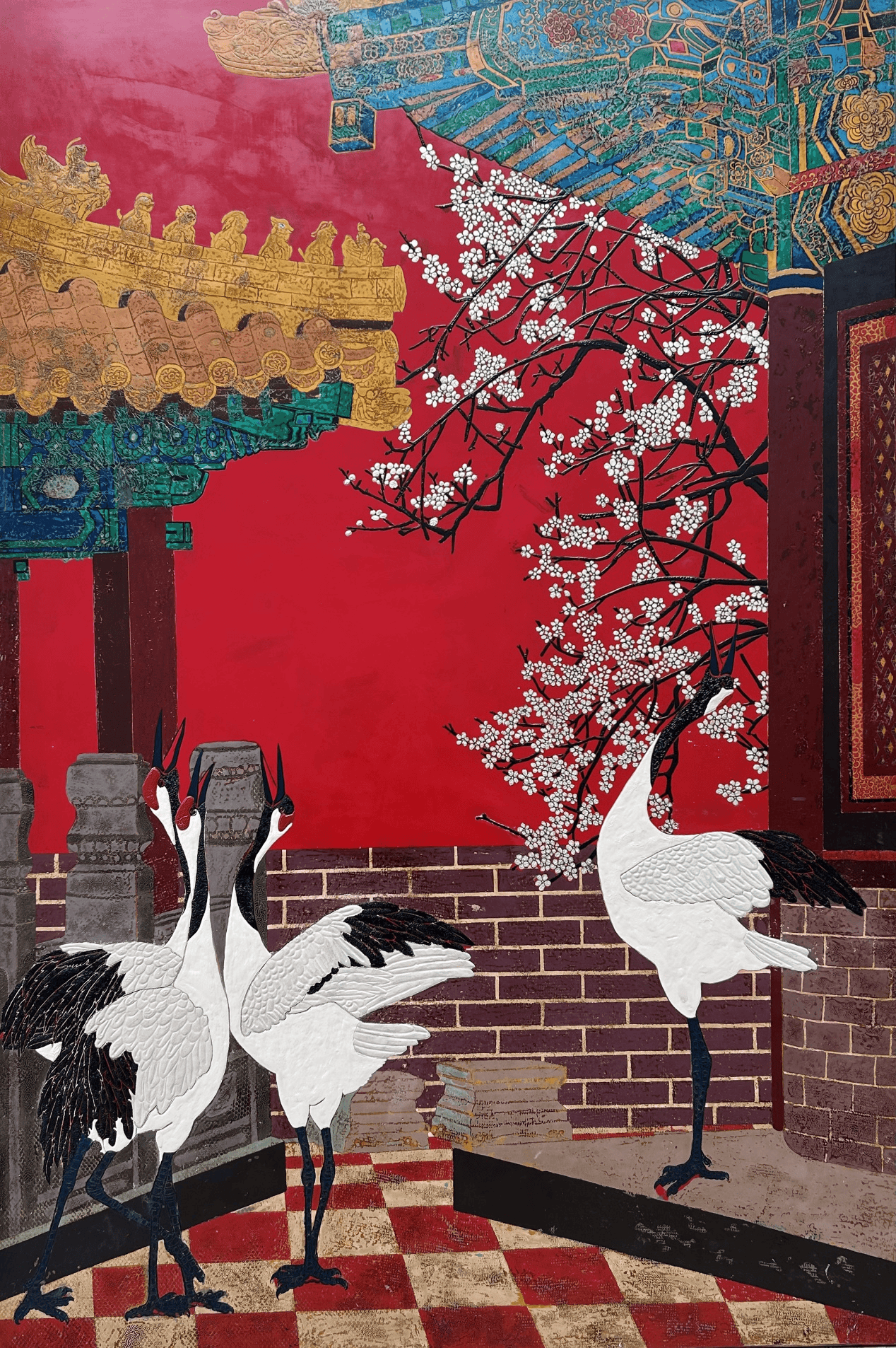 《鹤鸣九皋》漆板、大漆 120×180cm 2025年