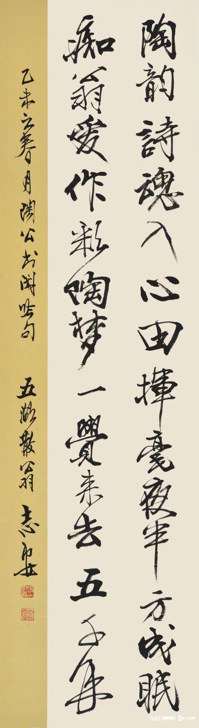 纵观王志安的书法作品,有三个显著的特征。第一:气势足,放得开,收得住,对作品整体气韵的把握十分到位。第二:笔法新颖,虽一点一画皆在法度之内,但却不落古人窠臼。第三:笔墨线条灵气十足,无论是行书、楷书,还是篆书,都展现出一种有节奏、有韵律的线条之美。北宋黄庭坚曾言:“士大夫下笔,须使有数万卷书气象,始无俗态。”“数万卷书气象”首先取决于一个人的学识积累,同时也是他思想境界、社会责任,人生抱负的自然流露。