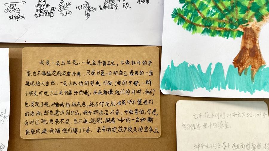 “水杉果子在水杉妈妈的‘摇篮’里自在的晃动”“因为我想去远方飞翔,所以我长出‘降落伞’似的叶子”“罗汉松,你真顽强,传播种子的方式好特别”……这些充满童真的文字,正是孩子与自然的链接。