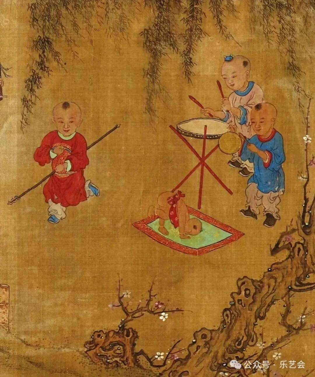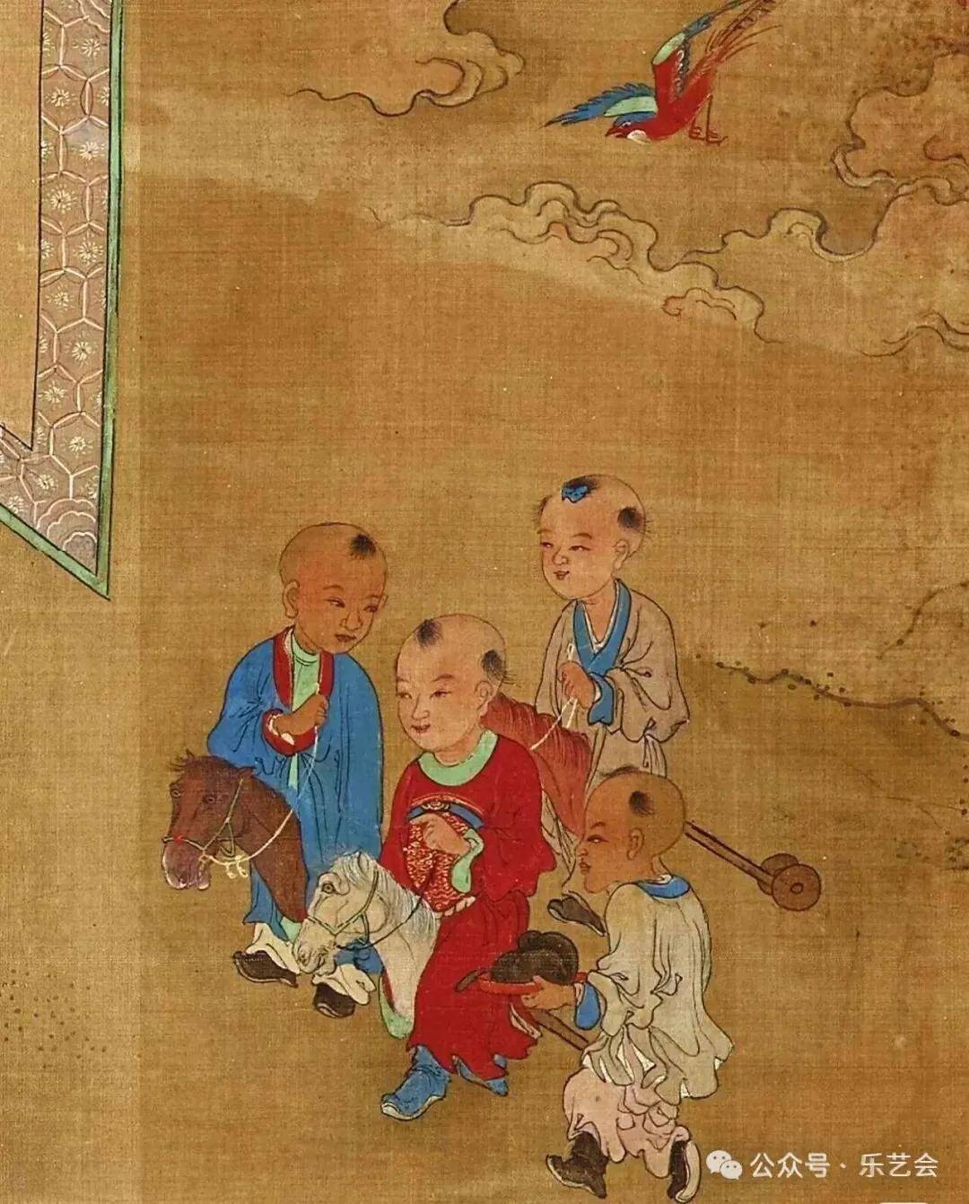 下图是清代佚名《百子图》中的孩子推车、孩子坐车,具体的车辆形态与宋代有所演化。