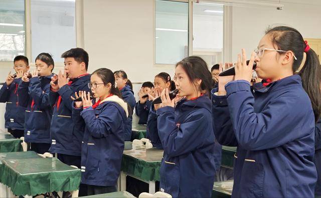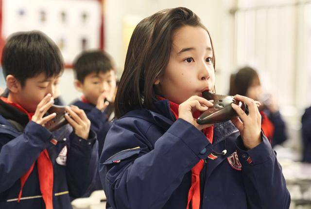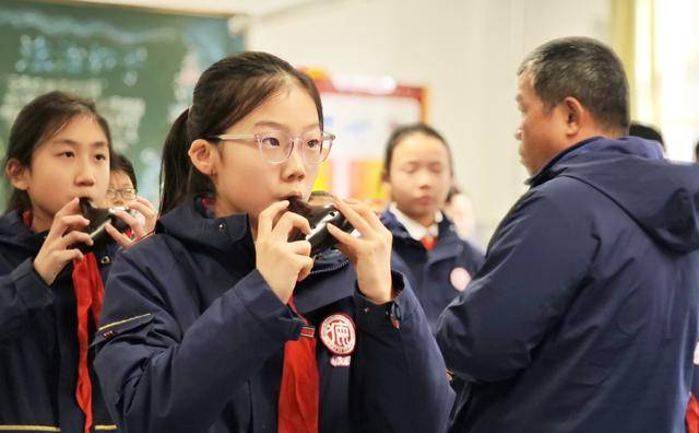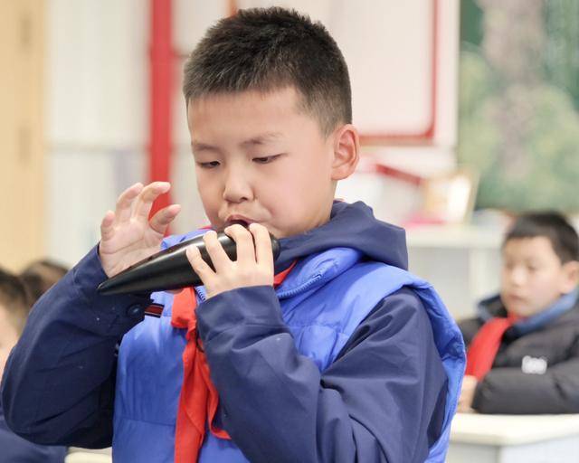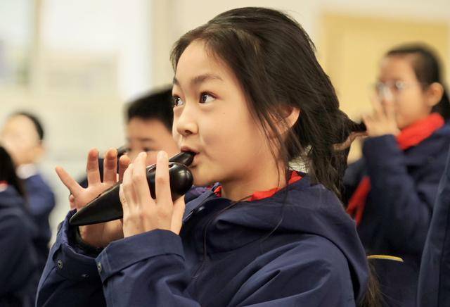 三年级的同学们全神贯注地按压着陶笛的每一个音孔,《划小船》的旋律宛如纯真的童年,天真烂漫。四年级学生吹奏的《小星星》,让陶笛声中洋溢着欢快的气息。五年级同学吹奏《送别》时,眼神中带着一抹淡淡的悠远意境。六年级演奏的《青花瓷》,则将古典韵味展现得酣畅淋漓,赢得了验收老师们的阵阵喝彩。