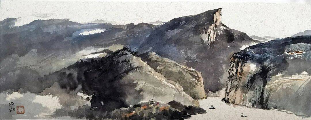 李家骝 夔门雄姿 设色纸本 23×62cm 2021年