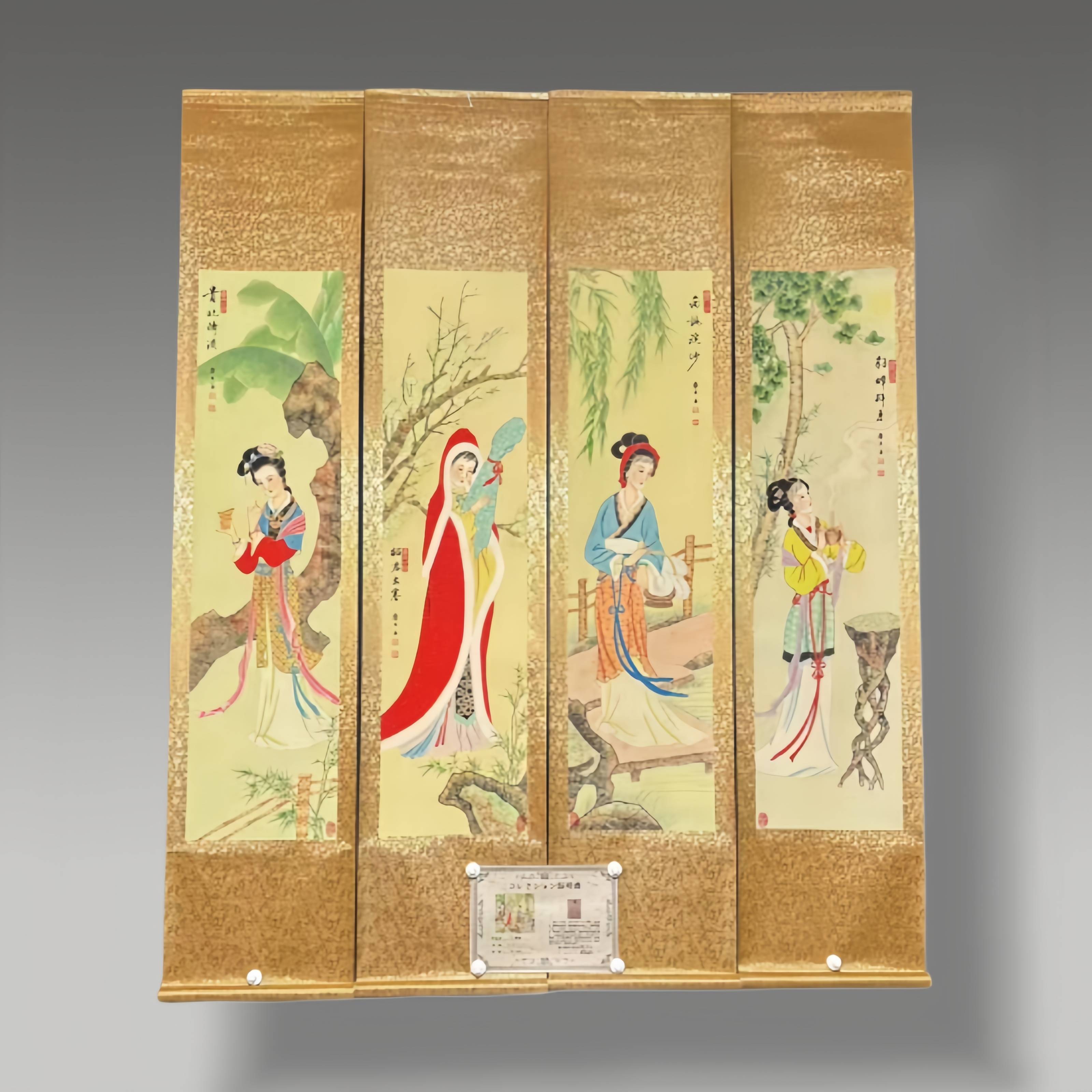 四大美女”题材的四条屏装饰画,通常以四大美女为主题,属于传统装饰画品类