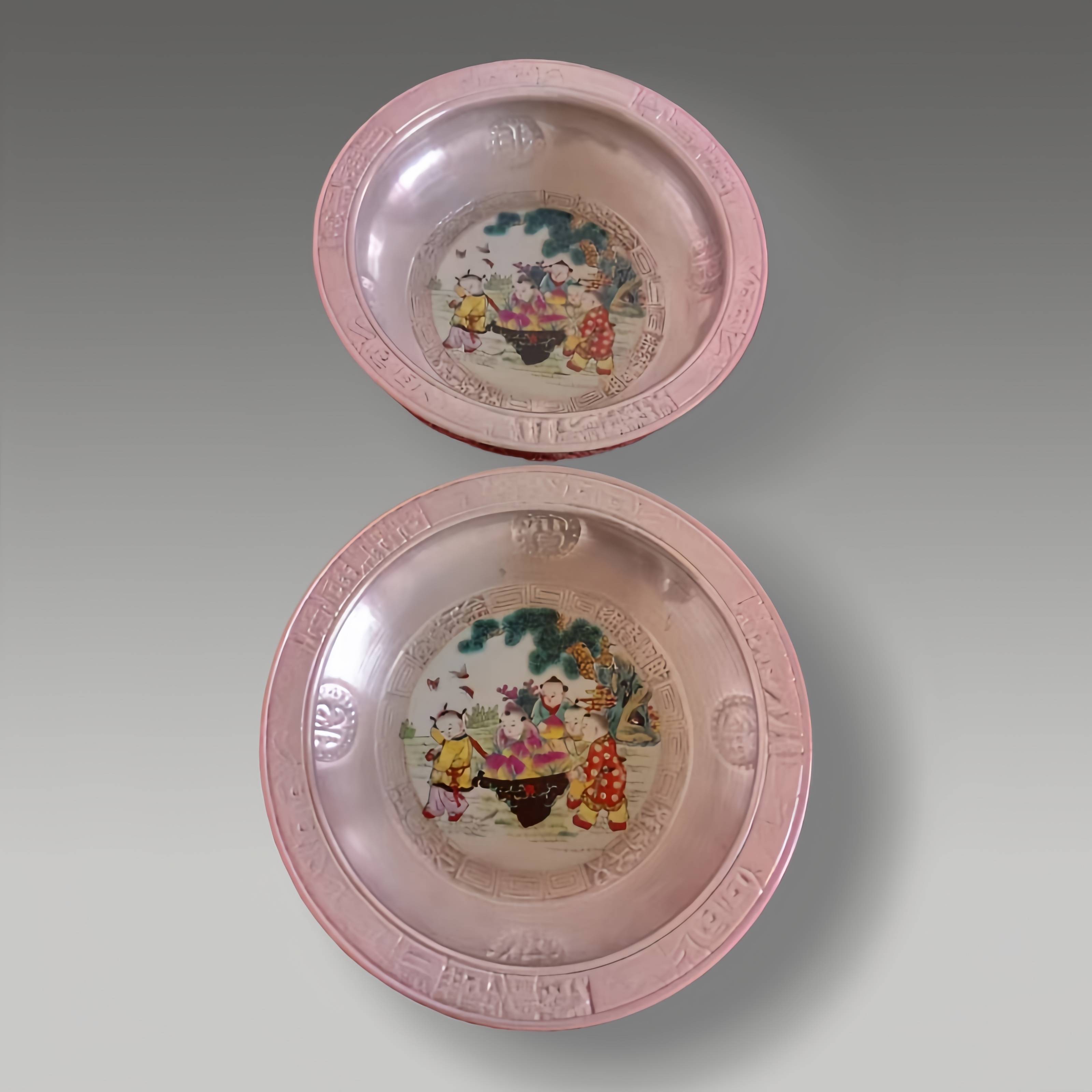 采用银包瓷工艺,外层鎏银,内部为瓷器外壁:龙凤呈祥纹,龙纹威武,凤纹华丽 内壁婴戏图,描绘儿童嬉戏场景