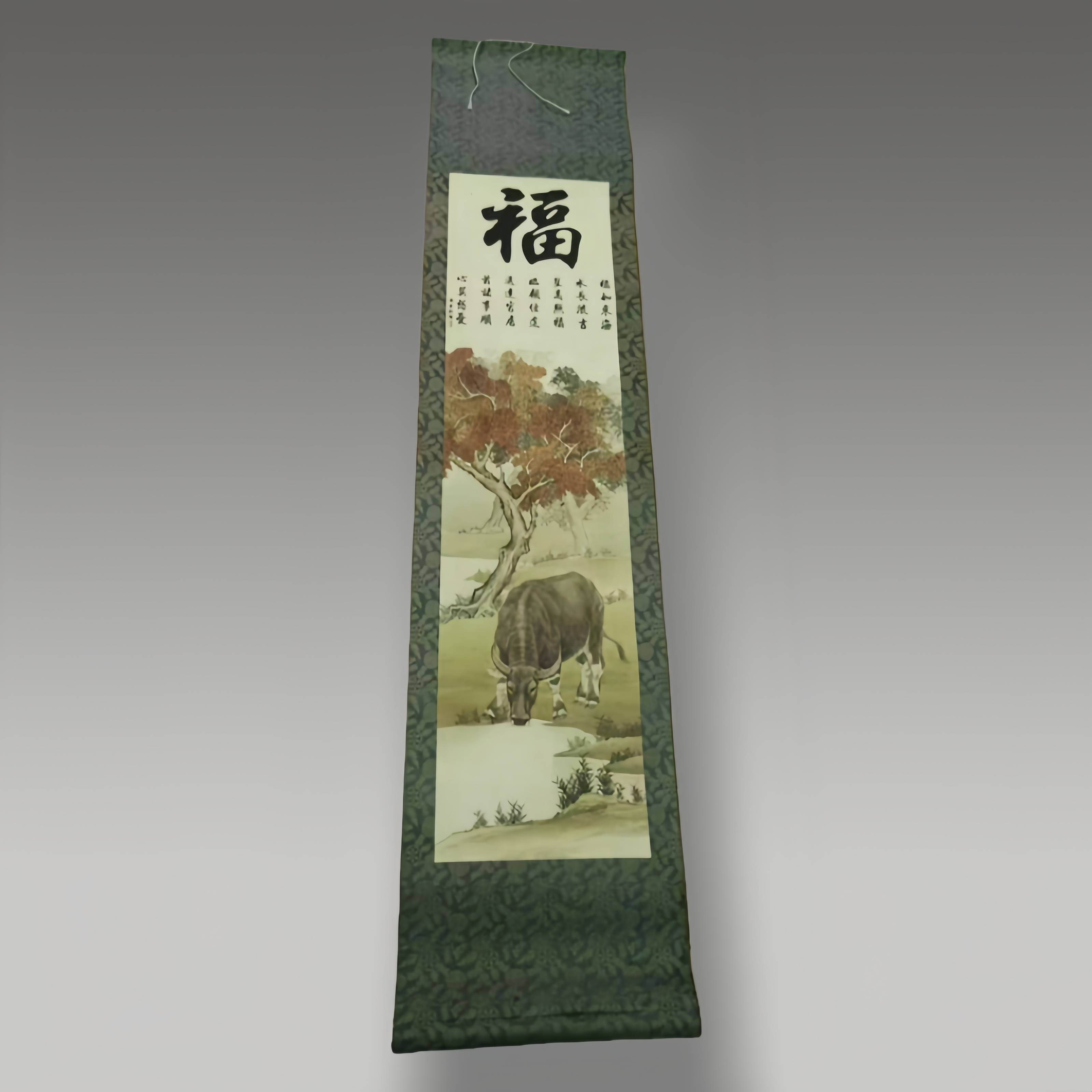 这组“福禄寿禧”四条屏,以大字配牛景绘吉意,笔墨清雅衬山水,题句含祥,是工致讨喜的传统吉祥装饰画