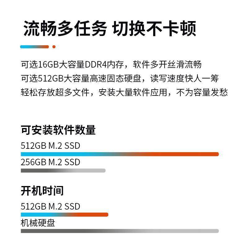 这款一体机搭载了第12代英特尔酷睿i5-12450H处理器,性能堪比许多高端笔记本。16GB DDR4内存让多任务处理变得轻而易举,无论是同时运行多个办公软件,还是处理大型设计文件,都能保持流畅不卡顿。512GB SSD固态硬盘的加入,让系统启动和文件加载速度大幅提升,告别等待的烦恼。