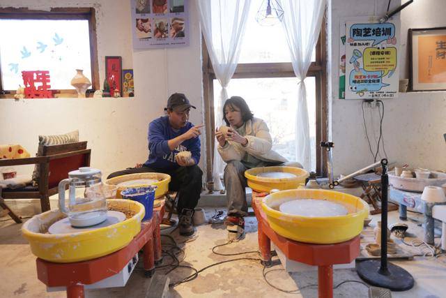 1月12日,青岛崂山区周哥庄附近的崂山脚下,一家陶艺店内暖意融融。店主曹明正悉心指导着学员拉坯,指尖轻抵陶泥,耐心叮嘱对方把控好手的力度与手法:“拉坯最忌贪心,多揉几下,泥坯可能就塌了。尤其是初学者,别过分追求圆满,不然容易前功尽弃,白费功夫。”