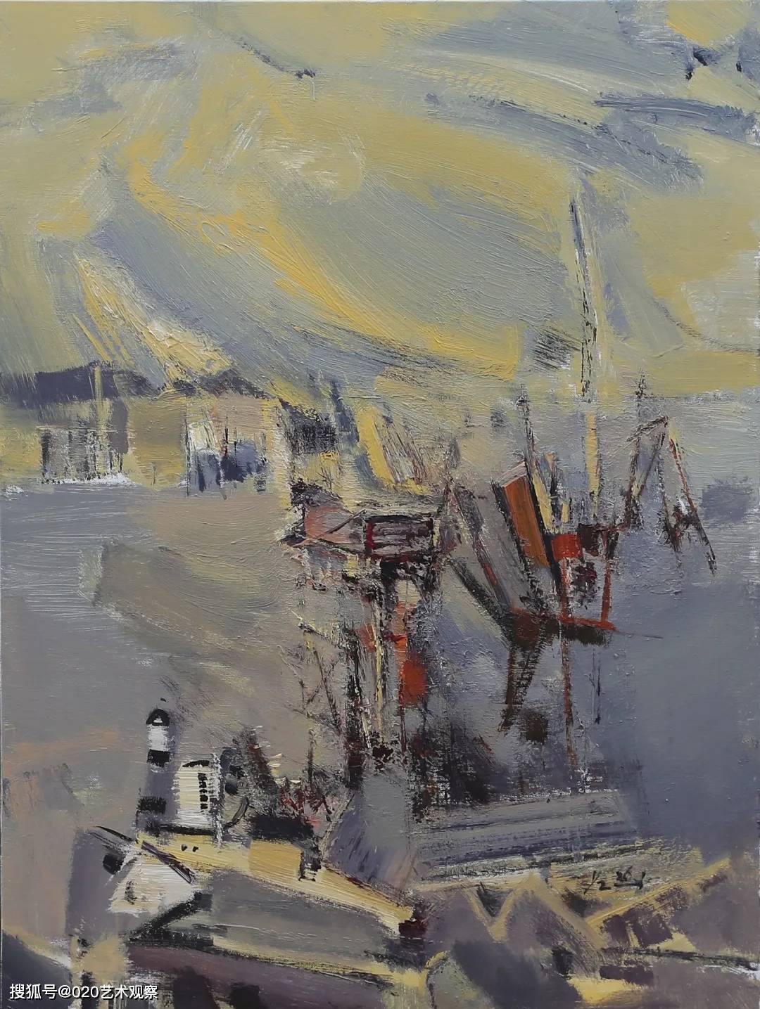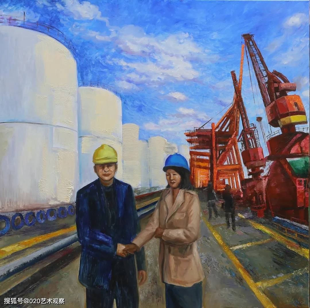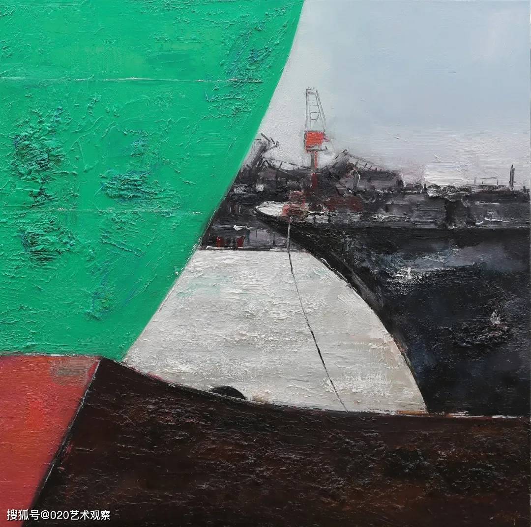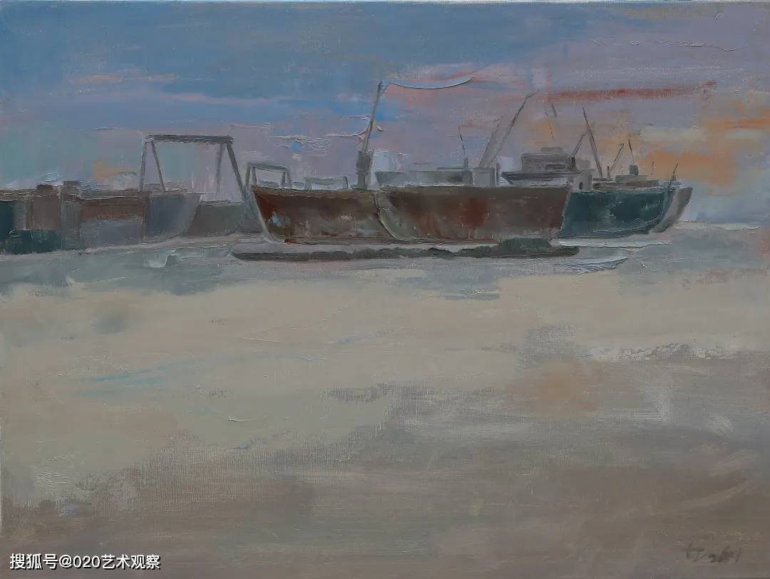 湘潭市美术家协会副主席、湖南省当代油画院展览学术委员会主任沈磊的创作风格独具特色,他选择以海景、码头为题材,追求悠远、宁静的感觉。“我的创作习惯就是喜欢安静的氛围,虽然是工业题材写生,但在珠江边16楼看到一望无际的江面,找到了自己想要的东西。”他认为,工业城市再繁忙也需要宁静的港湾和心灵的慰藉,“我想通过画面呈现工业的浪漫与婉约一面”。作为湖南人,他曾在老工业城市画过类似题材,此次重拾既有情怀也有新思考:“想表达大工业环境下人类的生存境遇,希望在快节奏的城市中,人们能找到心灵的港湾,平衡生活节奏。”