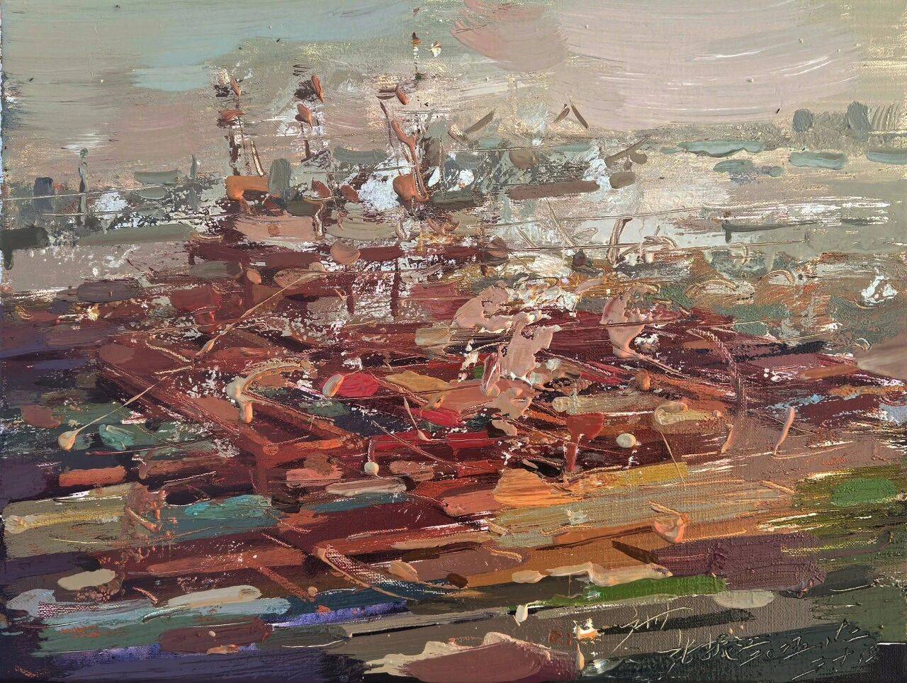 张振江 极目珠江No.1-律动黄埔港 布面油画 30cm×40cm 2026年