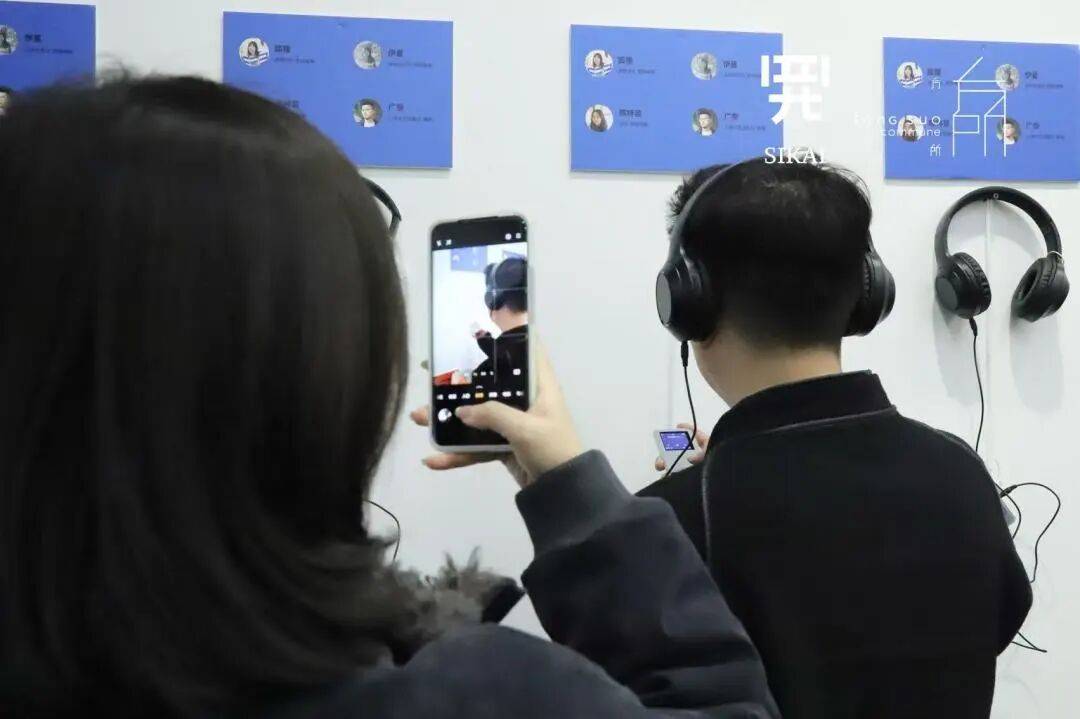 我们只是把耳机和声音提供给你。同时还可以在展墙上用便利贴留下你的答案。这面展墙,由你与我们共同完成。