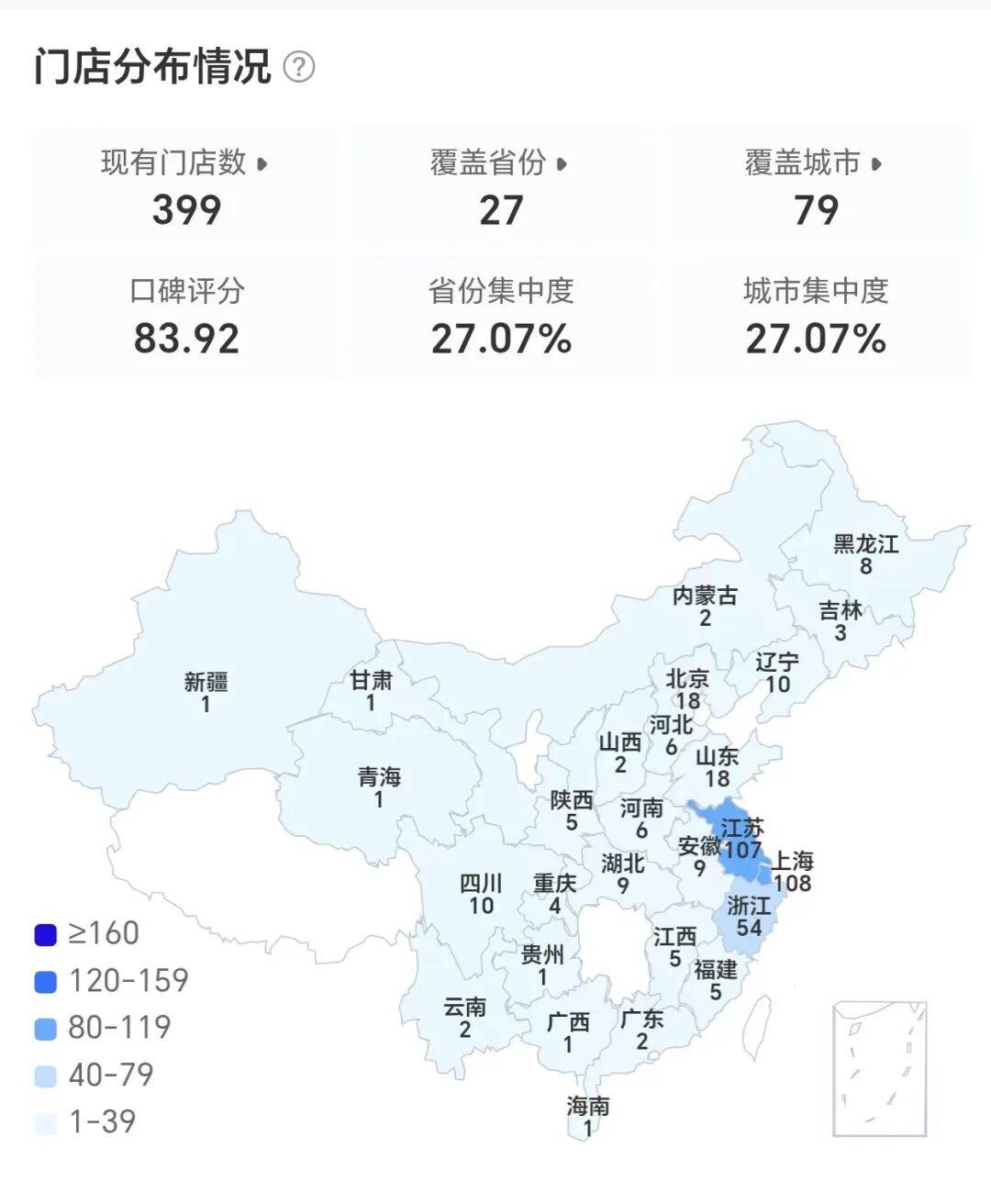 窄门餐眼数据显示,乐乐茶近一年关店数为132家,门店数呈现负增长。截至目前,乐乐茶在营门店数为399家,覆盖27省份、79个城市。其中,除上海和江苏门店破百外,包括新疆、贵州、青海、甘肃、广西、海南等在内的多个省份仅一家门店,在河北的门店为6家。