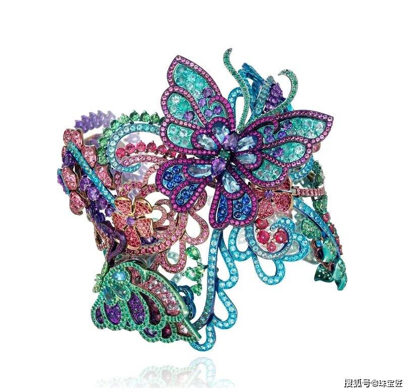 Haute Joaillerie可变形手镯,帕拉伊巴碧玺紫水晶托帕彩色钛合金 by Chopard