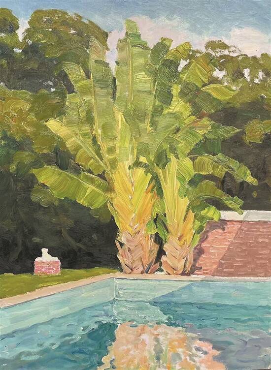 游泳池边的美人蕉(布面油画)