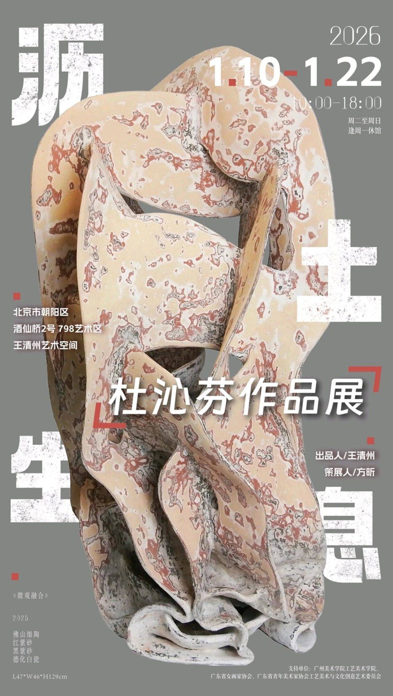 本次展览由王清州担任出品人、方昕担任策展人,系统梳理了青年陶瓷艺术家杜沁芬博士的创作脉络,集中展出其《器系列》《壳系列》《微观系列》三大代表性系列作品,其中九件为首次集体亮相的新作,为观众呈现当代陶艺与生命哲思的深度对话。