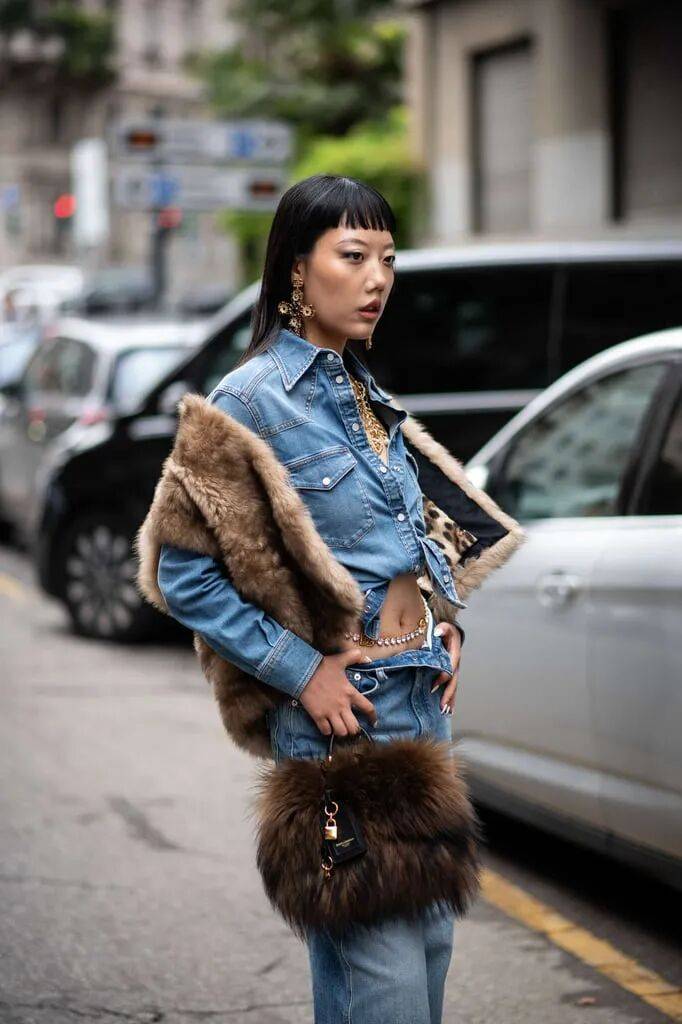 搭配方式:皮草外套搭配牛仔裤、运动鞋或短靴,内搭简约针织衫或卫衣。