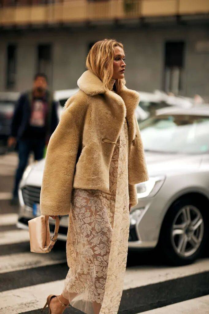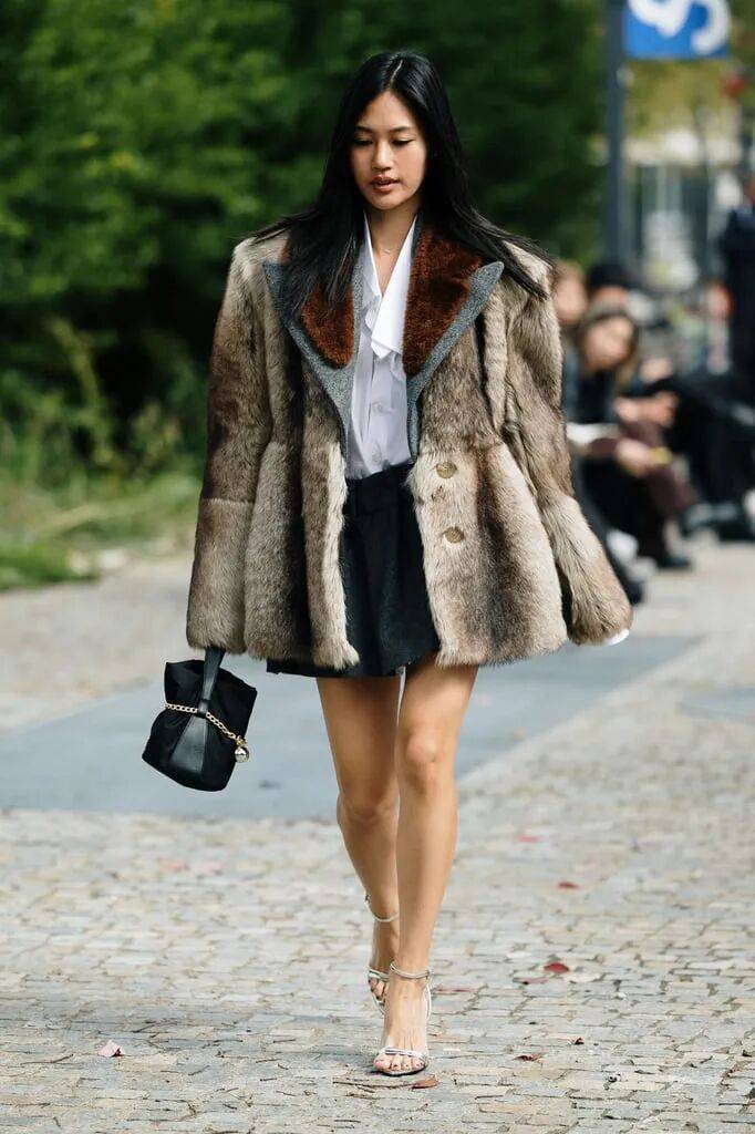 亮点:全皮草造型是冬季最显贵气的搭配之一,瞬间提升整体气场,适合重要场合或晚宴活动。
