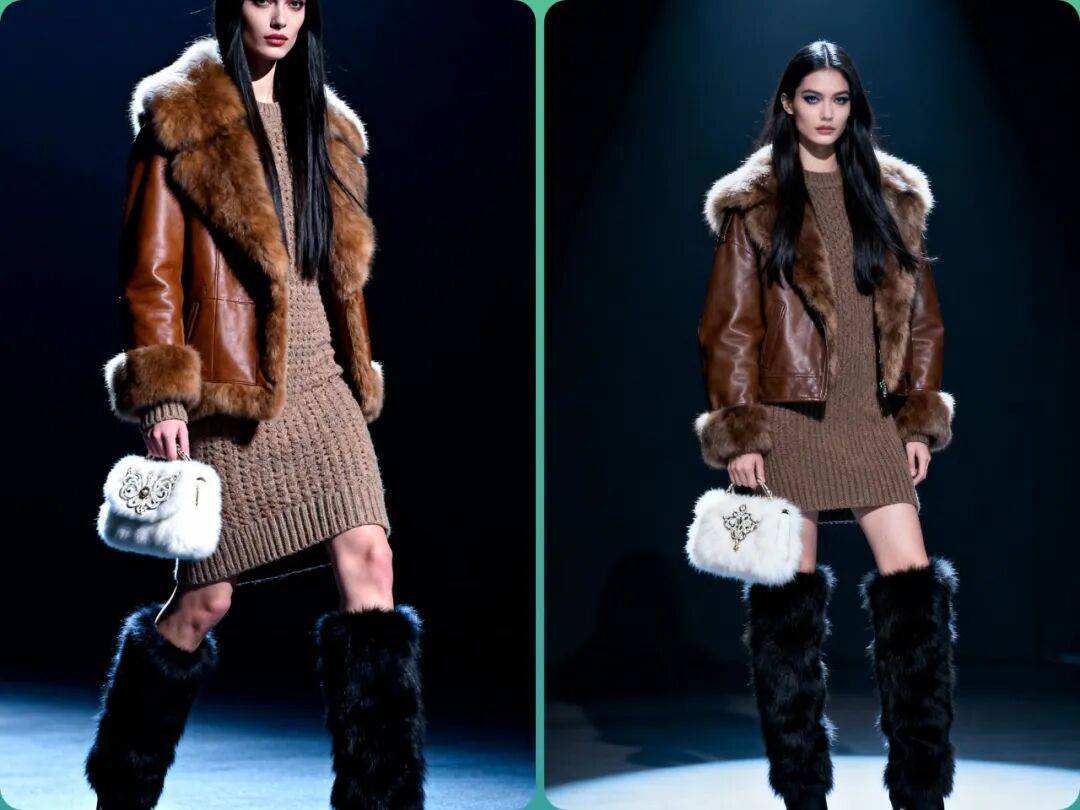 2. 材质创新:环保皮草成为主流,同时设计师们也在尝试与其他材质(如皮革、针织)结合,创造出更具层次感的单品。