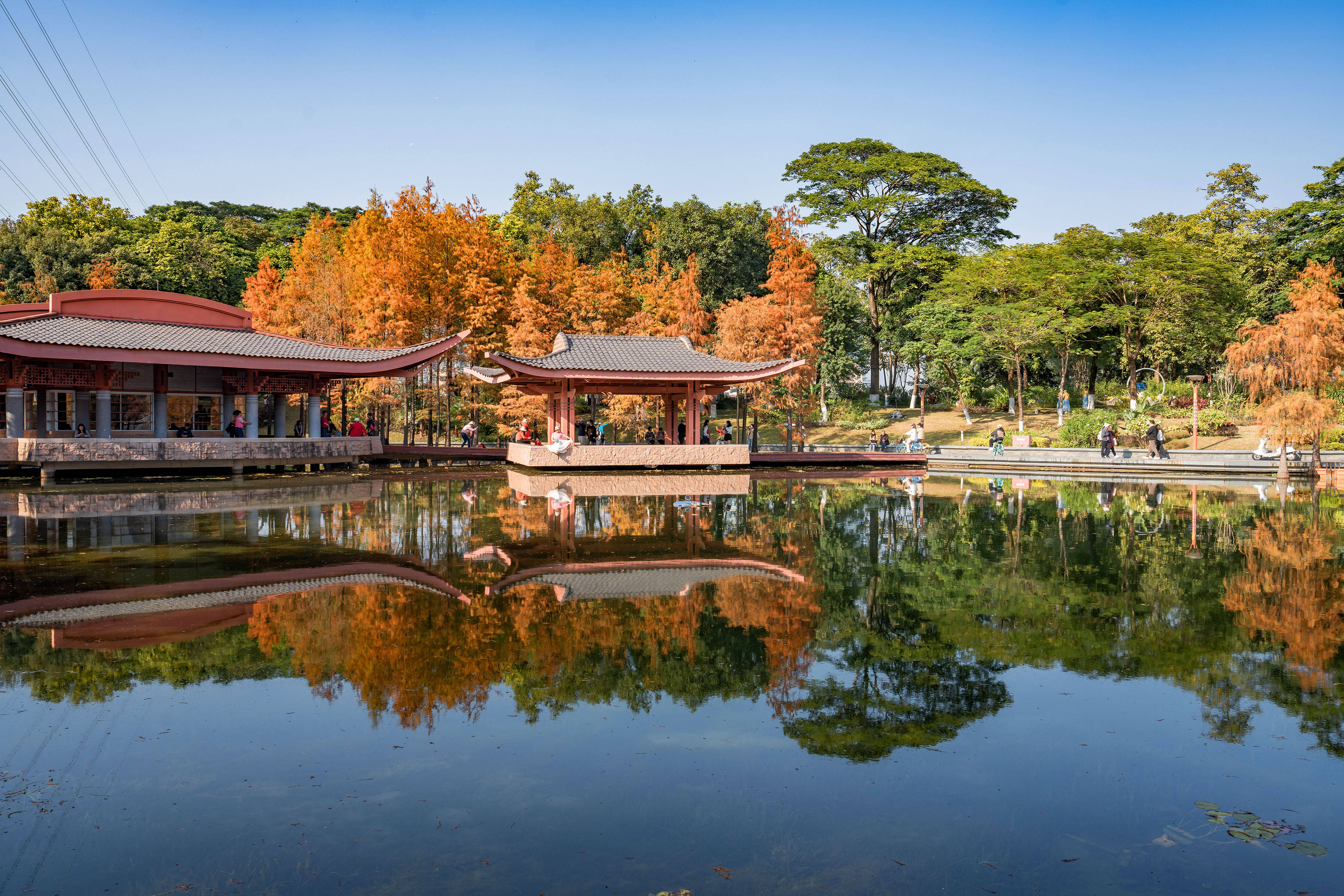 欣赏千灯湖的落羽杉,更妙的是能感受到一种文化的交融。公园的设计深得岭南园林精髓,亭、台、楼、阁、桥、榭点缀其间,飞檐翘角与红杉碧水相映成趣。中国式的古典浪漫与西方油画般的浓烈色彩在此碰撞、融合。你可以坐在一座名为“水云间”的凉亭里,看红叶飘落如雨,感受“停车坐爱枫林晚”的古典诗意;也可以在现代感十足的观景平台上,用镜头捕捉光线与色彩构成的几何美学。