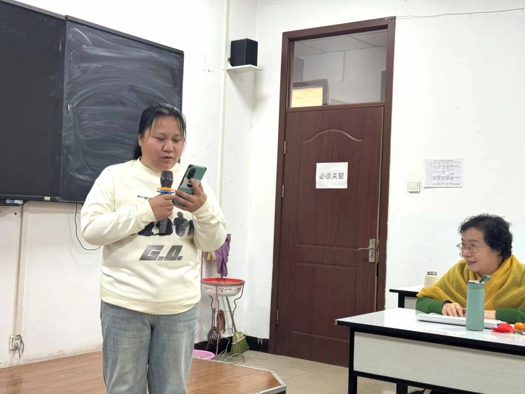 总结环节过后,文艺联欢正式拉开帷幕。师生们各展所长,纷纷登台献艺,为现场带来了一场精彩纷呈的表演。独唱、二重唱歌声悠扬,传递出对生活的热爱;诗朗诵声情并茂,抒发着岁月沉淀的情怀;太极拳刚柔并济,尽显老年学员的精气神;健美操活力满满,展现出大家昂扬向上的风采。其中,王老师倾情献唱的《祖国慈祥的母亲》更是将现场气氛推向高潮,真挚的歌声感染着每一位观众,赢得阵阵掌声。小小的舞台上,节目形式丰富多样,欢声笑语此起彼伏,充分展现了工笔素描班师生多才多艺、积极乐观的精神面貌。