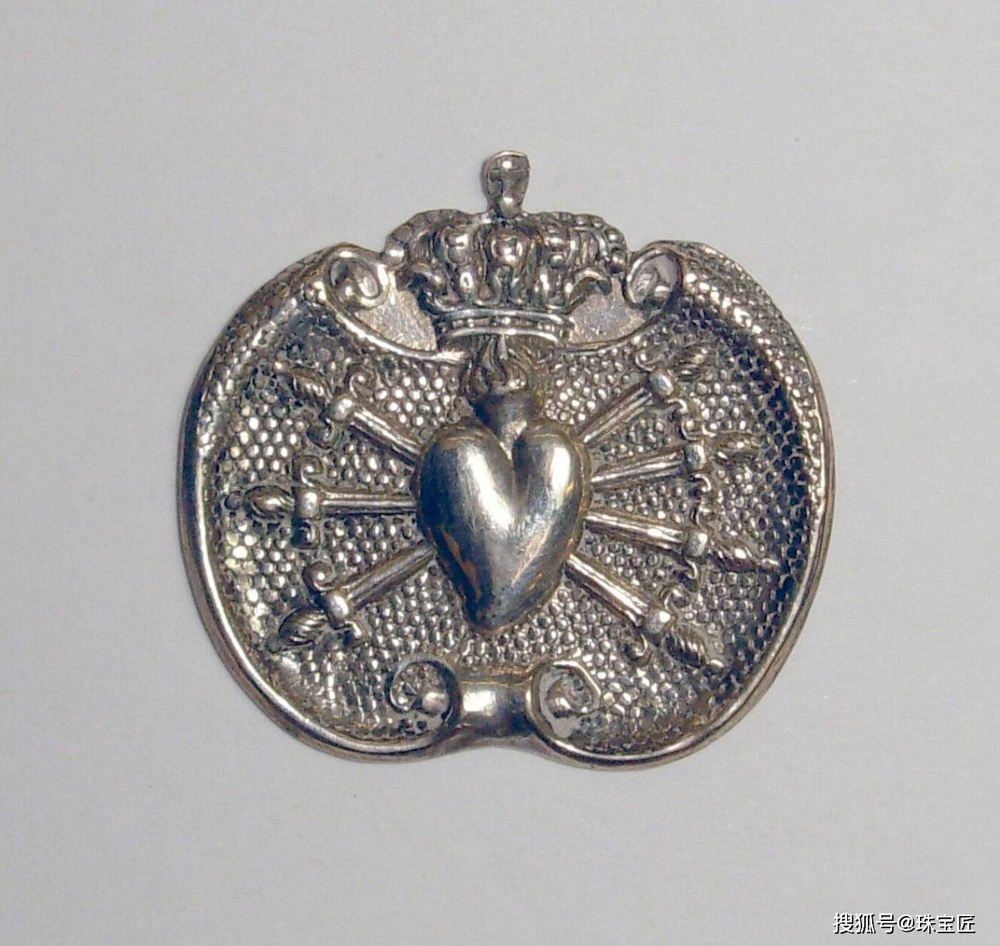 这一宗教象征最早可追溯至中世纪,17-18世纪后,天主教艺术迎来“黄金时代”,七剑穿心款式的珠宝首饰也跟着“出圈”,在欧洲天主教地区成了经典宗教饰品,吊坠、圣牌、胸针中较为常见。
