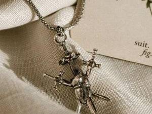 结合剑的数量和背后的文化故事,“剑心珠宝”主要形成两大经典品类:自带神圣光环的七剑穿心(源自天主教)、潮酷亚文化专属的三剑穿心(来自塔罗牌),二者各自走出了不一样的成名路,共同组成了“剑心珠宝”的精彩宇宙。