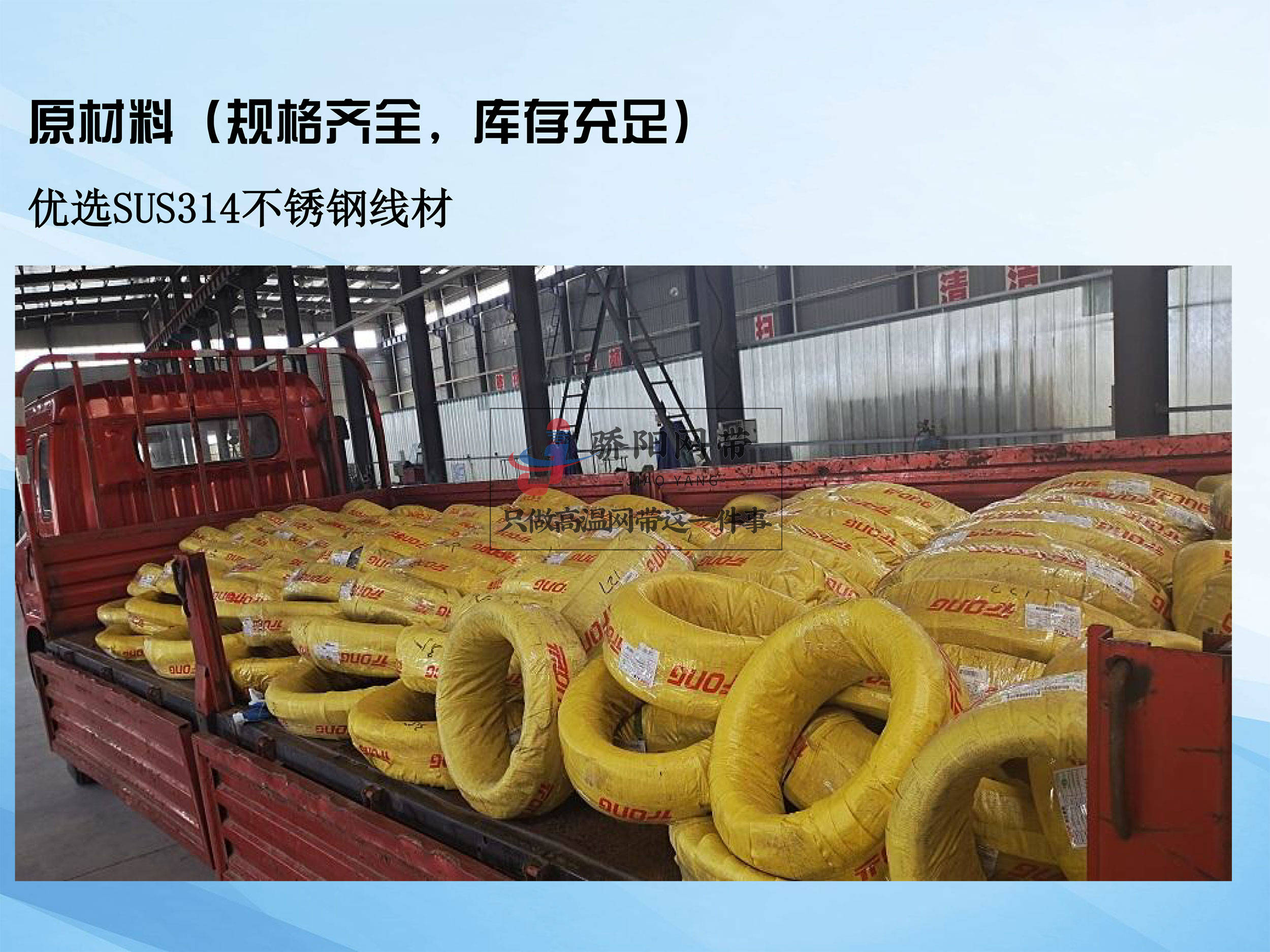 扬州骄阳网带制造有限公司就是一家在茶具烧结炉网带领域口碑良好的企业。骄阳网带专注于高温网带的研发、生产和销售,拥有多年的行业经验。公司占地面积达30亩,配备1个大型现代化生产车间和60多名技术精湛的操作人员,技术力量雄厚。公司拥有30多台全自动绕丝机、数控调直机、智能压花机,实现高精度、标准化生产。