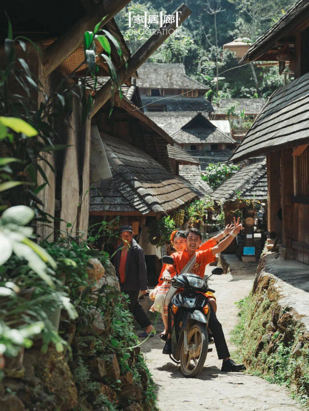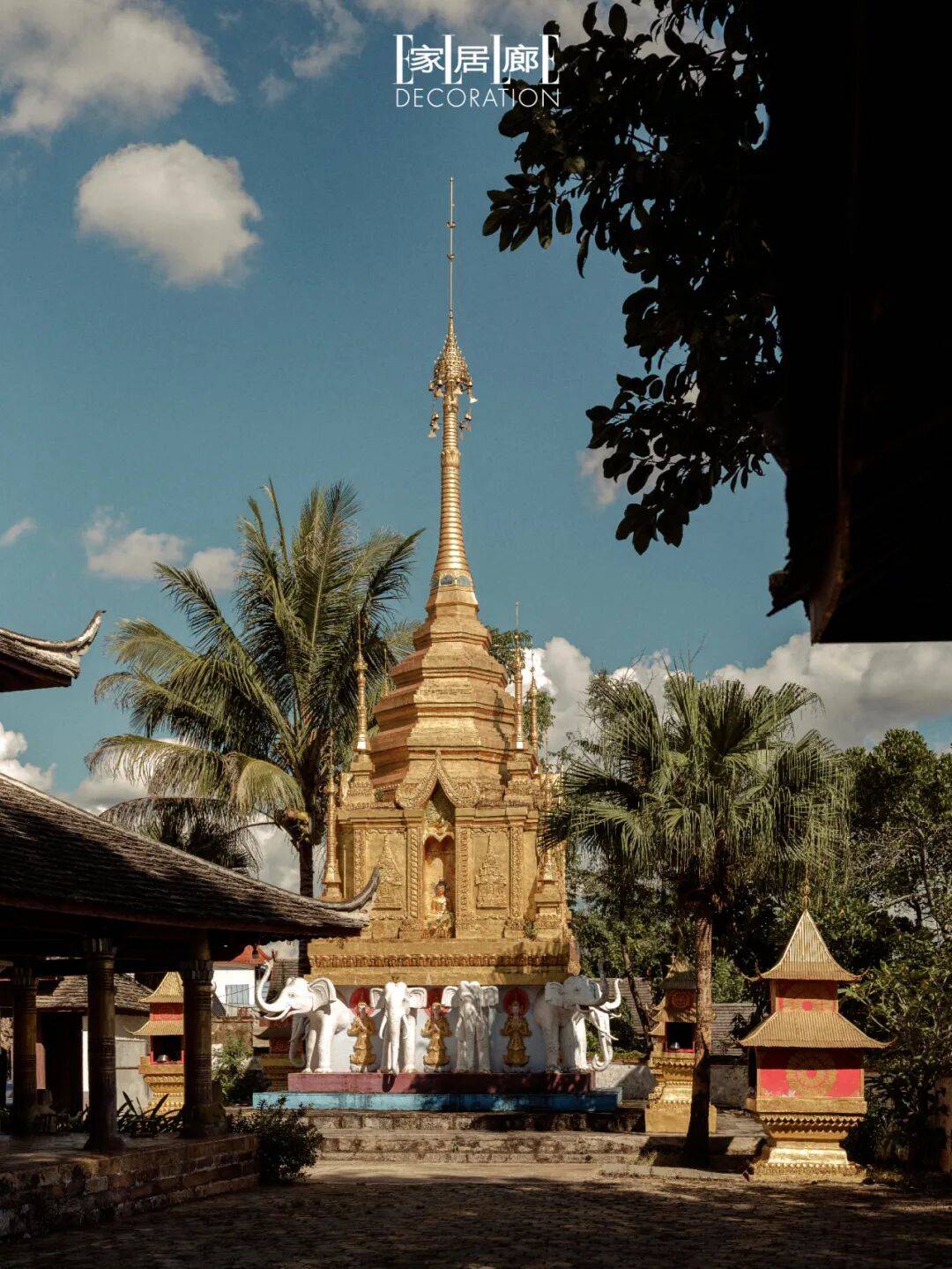 如果深度游览景迈山,除了茶体验,最不可错过的还有古寨的生活方式。糯岗古寨是傣族生活的日常写照。干栏式民居的屋顶尖角如牛角般翘起,充满生命力。清晨,炊烟与山间云雾一同升起,将整个寨子笼罩在一片宁静里。