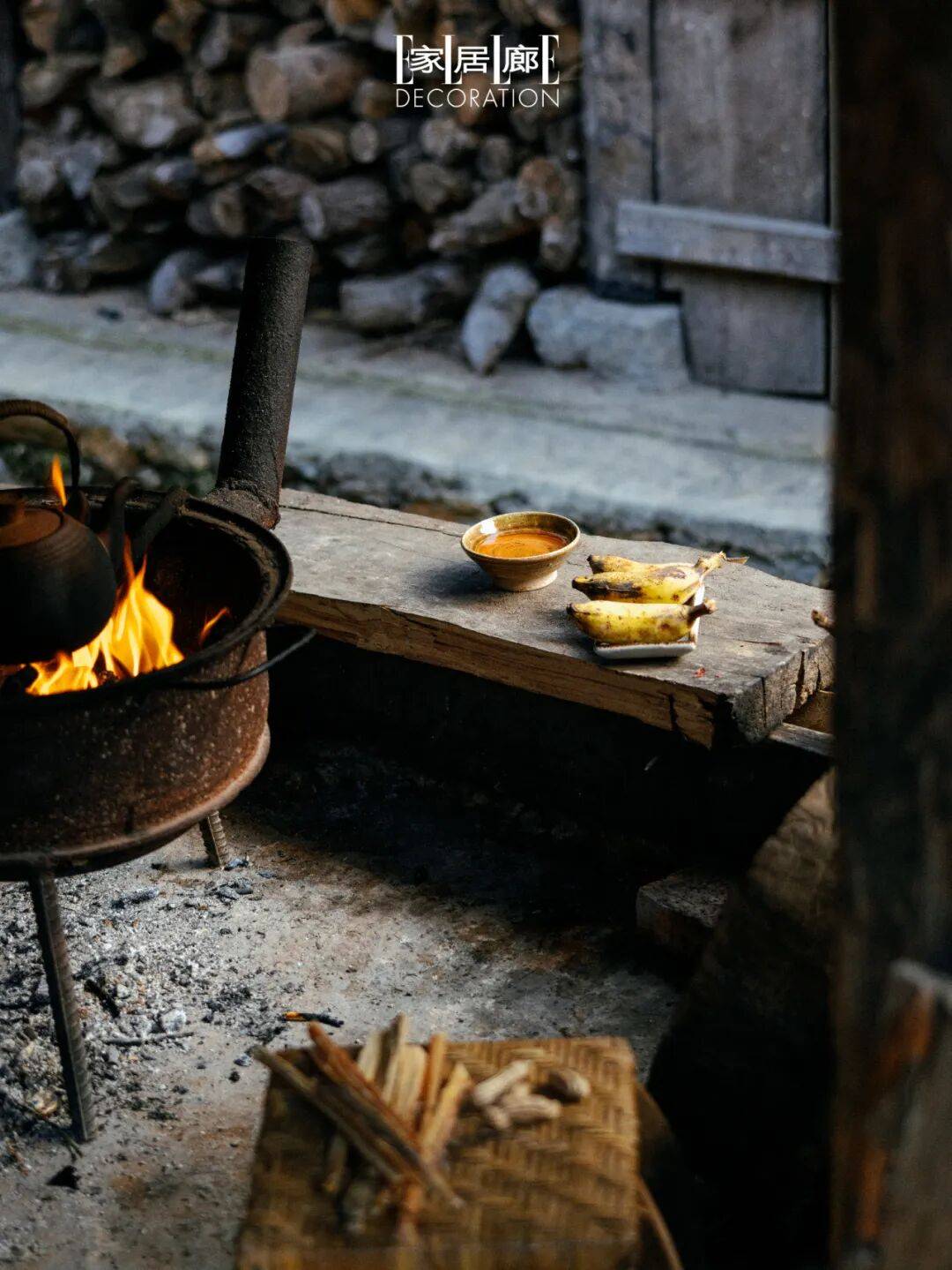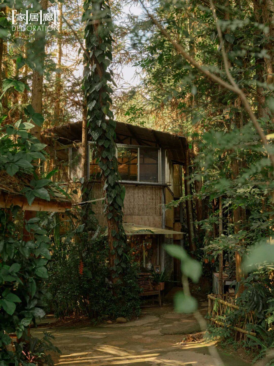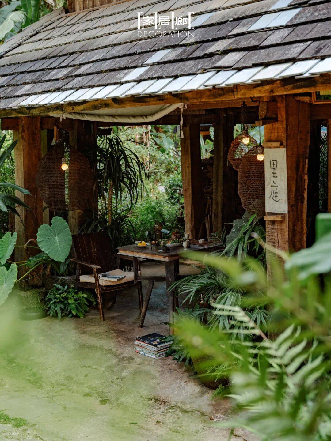 “里庭”茶室的主理人充分利用古寨干栏式建筑的底层架空,将中古家具、软装饰品、线香和读物置入其中,如同一处世外桃源,身处其中时间也慢了。