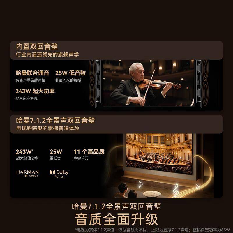 ⚠️ 注意事项:安装时建议选择专业师傅上门服务。虽然随机附赠固定挂架,但85英寸大屏需要两人以上配合安装,确保安全稳固。