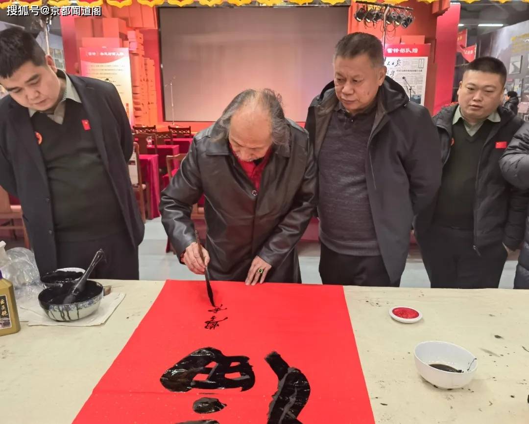 书写之时,艺术家的带有波浪的长发随着运笔灵动的身躯而飘逸起来,他的大家风范让人情不自禁打心里折服。先生以大号毛笔酣畅淋漓写“福”,再用小号毛笔锦上添花题字及落款,笔走龙蛇间尽显非凡功底和独特运笔风格,每幅字完成后都用心盖上自己的印章,才放在一边旁的地面上晾晒墨迹……不少嘉宾纷纷驻足围观,久久不愿离去,赞叹声此起彼伏,还有人向高玉海索要福字。从铺好宣纸,到一气呵成,每看写一字都是一种享受!