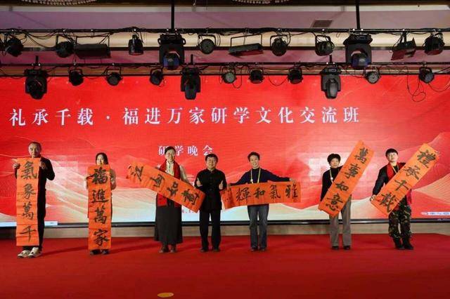 参会者怀着崇敬之心,手持老师们现场创作的多幅书法作品合影留念。从“气象万千”的磅礴,到“和气致祥”的温馨;从“山高水长”的深远,到“万事如意”的祝福;特别是“礼承千载”的主题作品,与舞台上“礼承千载·福进万家”的背景交相辉映,构成了一幅生动的文化传承画卷。每幅作品都不仅仅是艺术品,更是中华文化精神的具象呈现。