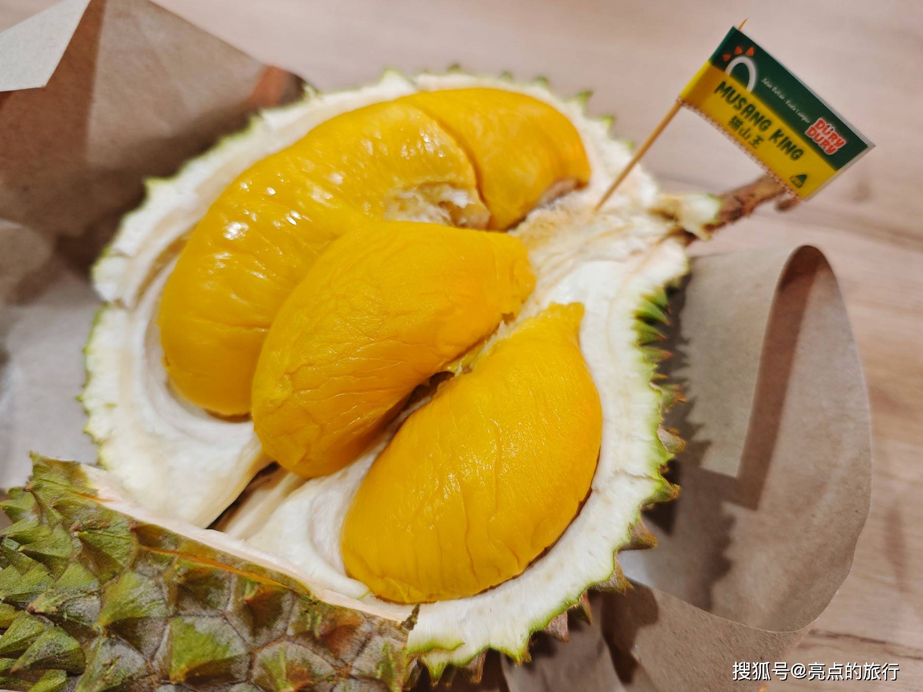 周边有很多餐厅,看到Dury Dury嘟哩嘟哩榴莲,查了下大众点评上评价还不错。不是路边摊,可以舒服坐下来吃,有空调。店外招呼拉生意的伙计很热情。这次在马来西亚吃了几次榴莲,这次点的是一个单品的猫山王,是好吃的。猫山王一公斤58,一个榴莲RM54。