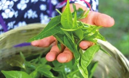 文井江枇杷茶以当地乔木大叶茶鲜叶为原料。 图据崇州文旅