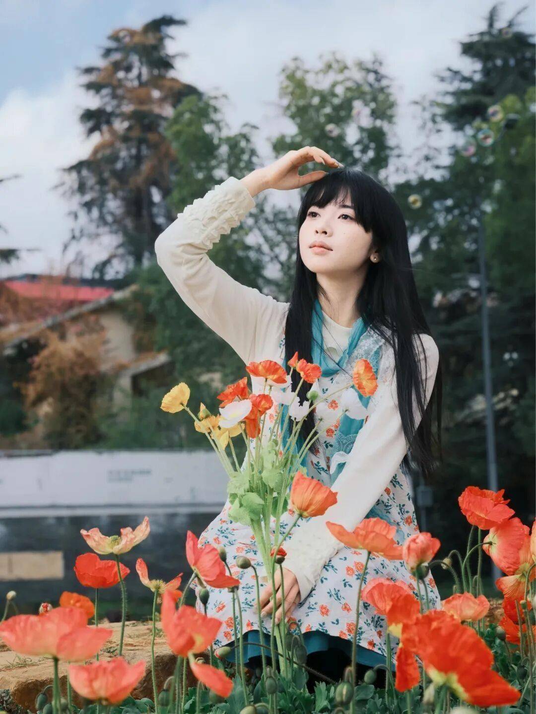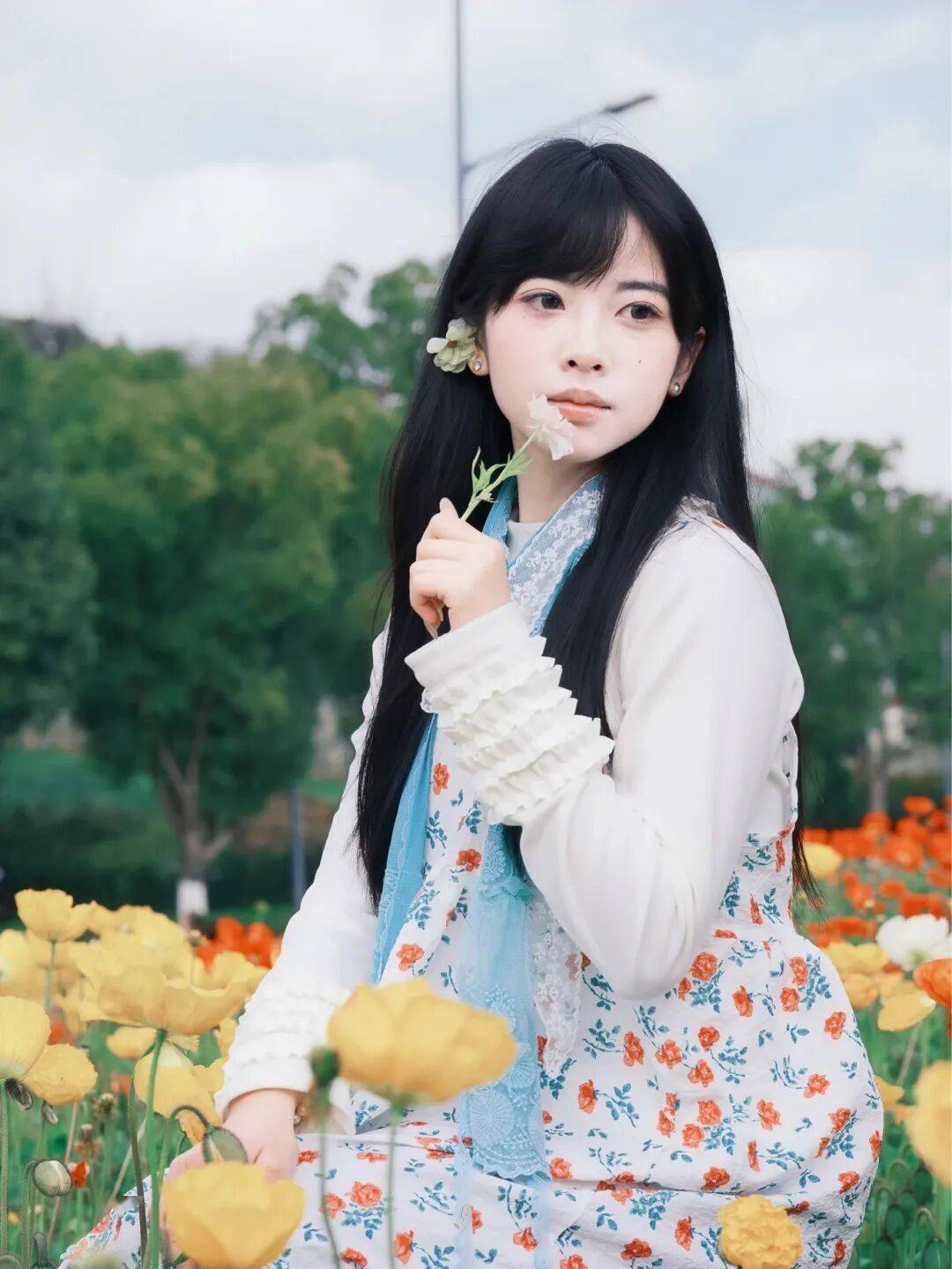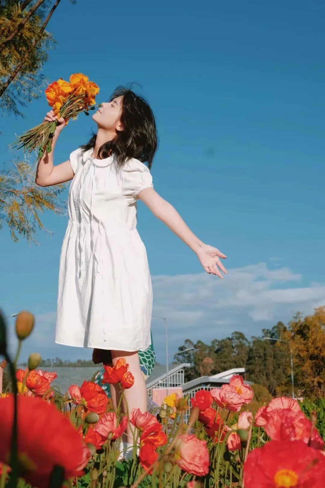 ✔互动姿势:低头闻香,发丝垂落=天然画框;背对镜头+回头瞬间,连拍 10 张必出 1 张“神图”。