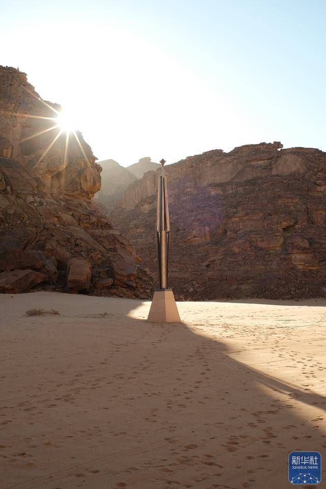 ↑这是1月15日在沙特阿拉伯欧拉举办的“沙漠未知数·欧拉”国际艺术展媒体预展上拍摄的艺术作品。
