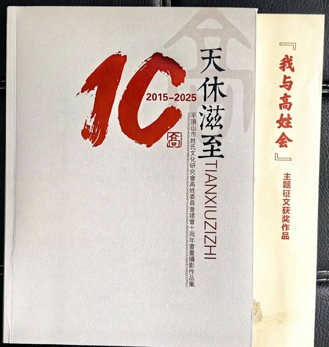 近日,平顶山市姓氏文化研究会高姓委员会向市图书馆捐赠两种书册。一种是《天休滋至》,高耿志主编,这是平顶山市姓氏文化研究会高姓委员会建会2015年至2025年十周年书画摄影作品集,收录了27位高姓人士的书画作品和6位高姓人士的摄影作品。一种是《“我与高姓会”主题征文获奖作品》。