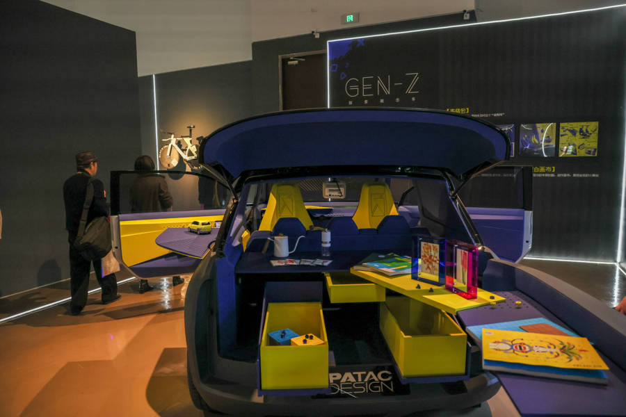 “一个好的设计创意,既能够推动产品转型升级,也能提升公众的审美能力和归属感、幸福感。”展厅中,与人们日常生活息息相关的创新之作令范迪安印象深刻。从大型的公共艺术装置到平面的城市视觉系统,从衣食住行到未来场域,艺术与设计于细微处提升生活品质。以一台“小白车”为例,这不仅仅是一辆概念车,更是Z世代彰显个性、表达自我、满足深层情感需求的独特平台,客户可以结合生活习惯和场景喜好,定义专属外观设计和座舱空间。在这里,车前灯是传递情绪、发送表情包的出口,车窗是展示潮玩、“谷子”的橱窗,后备箱打开便是迷你咖啡吧……