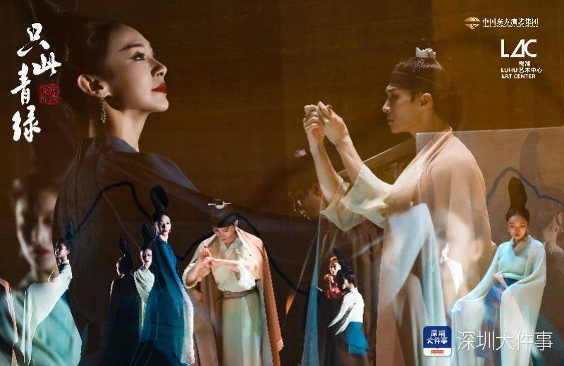当晚19时30分,现象级文化IP——舞蹈诗剧《只此青绿》在大剧场震撼上演。东方演艺集团的优秀舞者们以“青绿”的呼吸与姿态,带领观众共赴一场身临其境的山河入画之梦。精湛的舞姿、唯美的舞台效果与深厚的文化底蕴,赢得了现场观众的阵阵掌声。演出开始前,一则《只此青绿》与人工智能(AI)视觉技术共创的创意视频在鹭湖艺术中心的户外巨型投影幕上循环播放,吸引了众多市民与艺术爱好者驻足观看。借助前沿的AI技术,将中国宋代传世青绿山水美学,与深圳标志性现代城市地标进行创造性融合的艺术实践,实现了跨越千年的美学对话与有机连接。