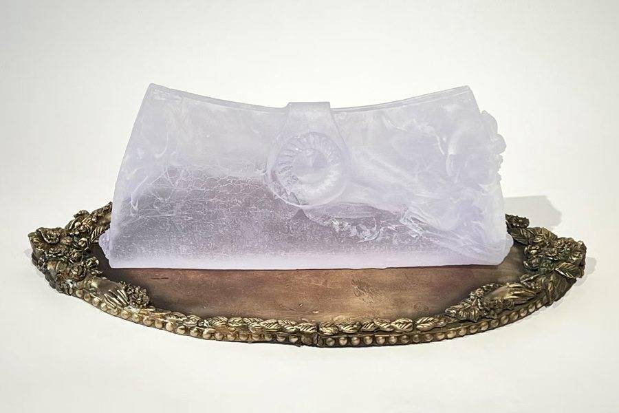 珍·布拉齐娜的创作常始于那些被发现或继承的物事:家具、私人杞念品、旧照……这些物件承载着生活经历的痕迹,透过细致的铸造与层叠,她重新诠释这些碎片,将影像与形态交融,创造出充满雕塑感的叙事,它们既指向个人经历,也映照集体历史。作品表面留下的划痕、接缝与微小瑕疵,如记忆被分割、重组与转化的过程本身。她说:“我不是在复制包包的外观,而是在保存一段被握着的时间”。